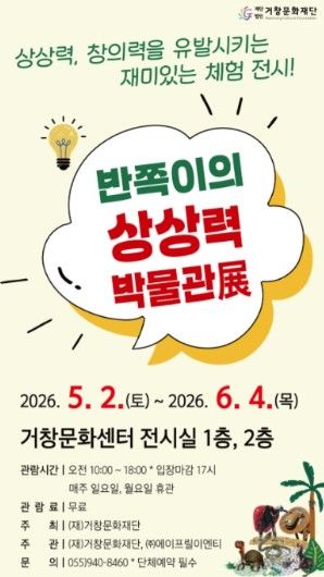 내고향뉴스 김명신 기자 | (재)거창문화재단은 가정의 달을 맞이해 오는 5월 2일부터 6월 4일까지 거창문화센터 전시실에서 2026년 기획전시 '반쪽이의 상상력 박물관展'을 개최한다.
