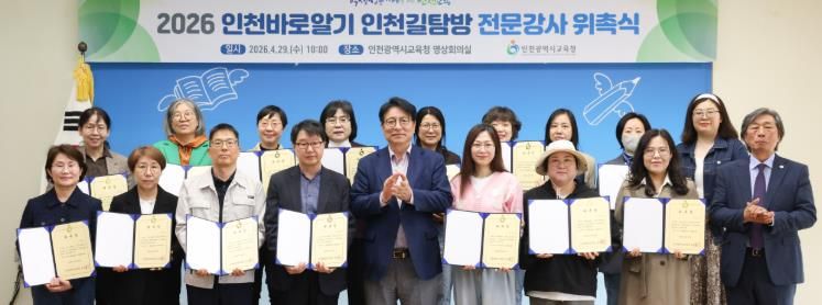 이날 위촉된 강사단은 2026년 ‘인천바로알기 인천길탐방 프로그램’에 참여하는 학생, 학부모, 교직원 등 총 205팀을 대상으로 활동하며 인천의 역사와 문화, 생태, 지리 전반에 걸쳐 전문적인 해설을 지원한다.