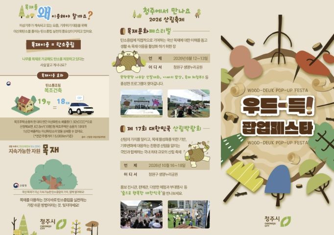 내고향뉴스 김명신 기자 | 청주시는 오는 5월 7일부터 10일까지 청원구 생명누리공원에서 목재문화 체험행사 ‘우드-득! 팝업페스타’를 운영한다고 밝혔다.