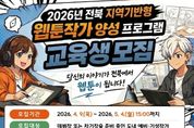 내고향뉴스 김명신 기자 | (재)전북특별자치도 콘텐츠융합진흥원(이하 진흥원, 원장 김성규)은 전북 웹툰 산업의 미래를 이끌어갈 인재 발굴을 위해‘2026년 전북 웹툰작가 양성 프로그램’ 교육생 12명을 모집한다고 밝혔다. 본 프로그램은 잠재력 있는 지역 창작자들이 안정적인 환경에서 창작 활동에 전념하고, 실무 역량을 강화해 데뷔 및 연재로 이어질 수 있도록 지원하기 위해 마련됐다. 모집대상은 전북특별자치도에 거주하는 만 19세 이상의 예비·기성작가로, 데뷔를 준비 중이거나 차기작을 계획하고 있다면 지원 가능하다. 선발된 교육생에게는 6개월간 매월 150만원씩, 1인 당 최대 900만원의 창작지원금이 지급된다. 또한, 우수 교육생으로 선정될 경우 최대 90만원의 원고료가 추가 지원된다. 교육과정은 ▲현직 웹툰 작가 및 PD와의 1:1 맞춤형 멘토링(총 70시간) ▲역량강화교육 ▲기업견학 및 비즈니스 상담 ▲국내 웹툰 전시회 참관 지원 등으로 구성된다. 신청 접수는 4월 9일부터 5월 4일 오후 3시까지 진행되며, 지원 희망자는 신청서와 작품기획서, 포트폴리오 등을 이메일로 제출하면 된