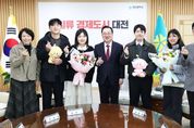 내고향뉴스 심민전 기자 | 대전시는 20일 시청 응접실에서 청년만남지원사업 ‘연(連) In 대전’을 통해 부부의 연을 맺게 된 결혼 1·2호 커플을 초청해 축하 티타임을 가졌다. ‘연(連) In 대전’은 청년 간 건전한 교류와 자연스러운 만남을 지원해 사회적 네트워크 확장을 돕기 위해 2025년 신규로 추진된 사업으로, 지난해 총 19회차 프로그램을 운영해 744명이 참가했으며, 누적 118쌍의 커플이 탄생했다. 이 가운데 3쌍은 결혼으로 이어지는 결실을 맺었으며, 이번에 초청된 1·2호 커플은 올해 상반기 중으로 결혼을 앞두고 있다. 또 다른 1쌍도 내년 상반기 결혼을 예정하고 있어, 단순한 만남 지원을 넘어 실제 혼인으로 이어졌다는 점에서 정책적 성과를 보여주고 있다. 이날 티타임에 참석한 결혼 1·2호 커플은 이장우 시장과 환담을 나누며 프로그램 참여 소감과 향후 계획 등을 공유하는 시간을 가졌다. 행사 말미에는 기념촬영을 진행해 청년 부부의 새로운 출발을 함께 축하했다. 이장우 대전시장은 “‘연(連) In 대전’을 통해 인연을 맺고 부부가 되는 두 커플을 만나 매우 기쁘고 뿌듯하다”며 “대전