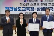 내고향뉴스 채필재 기자 | 전라남도교육청은 14일 상해한국상회와 ‘청소년 스포츠·문화 교류를 위한 업무협약(MOU)’을 체결했다. 이번 협약은 전남 학생들과 상해 지역 한국 청소년들이 스포츠를 매개로 협동심과 리더십을 기르고, 문화·역사 체험을 통해 세계시민 의식과 정체성을 키우기 위해 추진됐다. 양 기관은 앞으로 ▲ 청소년 스포츠 교류전 참가 협력 ▲ 현지 역사·문화 체험 프로그램 지원 ▲ 글로컬 인재 양성을 위한 국제교류 운영 ▲ 교육·체육 분야 행사 및 정보 공유 등을 추진할 예정이다. 특히, 상해는 일제강점기 대한민국 임시정부가 수립된 역사적인 도시로, 청소년들이 우리 민족의 독립정신과 애국심을 배울 수 있어 교육적으로 의미가 깊은 곳이다. 상해한국상회는 풍부한 경험과 인적·사회적 자산을 바탕으로 ▲ 청소년 교육 프로그램에 대한 전략적 투자 ▲ 한중 양국의 한국 학생 간의 지속 가능한 교류 ▲ 지역사회 네트워크를 활용한 교육 콘텐츠 재생산 등 교육 협력의 새로운 모델을 제시할 예정이다. 전남교육청은 전남의 학생들이 세계와 소통하며 미래를 준비할 수 있도록 교육 외교의 장을 넓히는