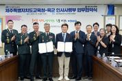 내고향뉴스 채필재 기자 | 제주특별자치도교육청은 13일 도교육청 상황실에서 육군 인사사령부와 고등학생들의 진로 탐색 기회 확대를 위한 업무협약을 체결했다. 이번 협약을 통해 양 기관은 군 관련 진로교육 활성화, 학교별 육군 간부 모집 설명회 지원, 대학입학정보박람회 협력, 군 특성화고 및 부사관학과 운영학교 대상 진로·직업 소개 및 모집 홍보 등 다양한 분야에서 상호 협력하기로 했다. 도교육청은 이번 협약을 계기로 학생들이 군의 다양한 역할과 직업적 비전을 올바르게 이해하고 군 진로를 미래의 선택지로 인식하는 데 도움이 될 것으로 기대하고 있다. 김광수 교육감은 “학생들이 진로를 탐색하는 과정에서 군이 가진 사회적 가치와 다양한 직무 영역을 직접 체험할 수 있도록 지원하겠다”라며 “교육청과과 군이 함께 협력하여 미래인재 양성에 기여할 것”이라고 말했다.