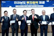 내고향뉴스 임정빈 기자 | 전라남도는 20일 도청 서재필실에서 국내 전선업계 1위 기업 ㈜LS전선의 자회사인 ㈜LS머트리얼즈, ㈜LS마린솔루션과 해상풍력 전용 설치항만 조성, 케이블 설치선 건조 등을 위한 투자협약을 했다. 협약식에는 김영록 전남도지사, ㈜LS전선의 구본규 대표이사, 이상호 재경구매본부장/CFO, 홍영호 ㈜LS머트리얼즈 대표이사, 김병옥 ㈜LS마린솔루션 대표이사, 명현관 해남군수 등이 참석했다. 이번 투자는 LS그룹의 전남 첫 대규모 해상풍력 프로젝트다. 정부 주도 SK·오픈AI의 서남권 AI 데이터센터 투자와 연계해 전력 다소비 시설 운영에 필요한 안정적 전력공급 기반을 강화하고, 전남도가 추진 중인 ‘30GW 해상풍력 발전단지’ 목표 달성에 실질적 동력이 될 전망이다. 특히 해남에 ‘한국형 에스비에르항’을 구축하는 출발점이 될 것으로 보인다. LS전선 계열의 제조·설치 역량을 중심으로 자회사 단계적 이전과 신규 투자, 연관기업 입주가 맞물릴 경우, 해남 ‘LS 클러스터’ 조성을 통해 덴마크 에스비에르항(해상풍력 모듈 설치항만·200여 기업 집적·2022년 매출 45조 9천만 원)과 같은 지역