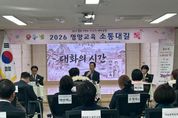 내고향뉴스 채필재 기자 | 경상북도영양교육지원청은 2026년 3월 11일, 교육지원청 대회의실에서‘2026 영양교육 소통대길 톡’ 행사를 개최하고 교육공동체와 함께하는 소통과 협력의 뜻깊은 시간을 가졌다. 이날 행사에는 임종식 경상북도교육청 교육감을 비롯해 박근호 교육장, 도교육청 관계자, 관내 초·중·고 교장단, 학교운영위원장협의회, 학부모회, 녹색어머니회, 학생상담봉사자회, 마을학교 관계자 등 교육공동체 구성원 30여명이 참석했다. 박근호 교육장은 주요 업무 보고에서 특색교육, 학교지원 및 교육환경 개선, 현안 사항 순으로 보고했다. 특색교육으로 ‘빛나는 문향의 얼잇기’, ‘영양사랑 나라사랑 마음 키우기’, ‘해달뫼 생태환경 교육’을 추진하고 ‘해달뫼 공동교육과정’, ‘마을학교 지원’, ‘특수교육대상학생 방과후 확대’ 등의 다양한 학교교육 지원과 영양초 학교복합시설과 영양도서관 개관 등의 교육환경 개선 성과를 강조했다. 임종식 교육감은 “오늘 소통대길 톡은 교육공동체가 함께 지역 교육에 대해 함께 고민하고 해결 방향을 모색하는 소중한 시간이었다”며 “앞으로도 더욱 교육공동체와 소통하면서 정책을