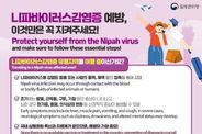 내고향뉴스 정미경 기자 | 질병관리청은 최근 인도(서벵골주)에서 발생한 니파바이러스감염증과 관련하여 해당 국가(지역)를 방문하는 우리 국민들에게 감염 주의를 당부한다고 30일 밝혔다. 최근 인도 보건당국의 공식 발표(1월 27일)에 따르면 일부 현지 언론보도와는 다르게 실제로는 인도 서벵골주에서 2명이 니파바이러스에 감염됐으며, 관련된 접촉자 196명은 증상이 없었고 검사 결과 모두 음성이 확인되어, 현재까지 추가적인 감염 사례는 보고 되지 않았다. 니파바이러스감염증은 치명률이 40~75%로 높고 백신·치료제가 없는 위험한 질병으로 질병관리청은 지난해 9월 선제적으로 제1급 법정 감염병으로 공식 지정하여 국내 유입에 철저히 대비하고 있다. 니파바이러스감염증의 주된 감염경로는 감염된 동물(과일박쥐, 돼지 등)과 접촉하거나 오염된 식품(대추야자수액 등)을 섭취할 경우 감염될 수 있으며, 환자의 체액과 밀접 접촉 시 사람 간 전파도 가능하다. 감염 초기에는 발열, 두통, 근육통 등이 나타나며, 현기증, 졸음, 의식 저하 등 신경계 증상 및 중증으로 악화되어 사망에 이를 수 있어 주의가 필요하다. 질병관리