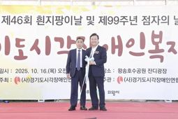 내고향뉴스 채필재 기자 | 의왕시는 10월 16일 (사)경기도시각장애인연합회 주관으로 열린 제46회 흰지팡이날 및 제99주년 점자의날 기념 ‘경기도 시각장애인 복지대회’가 의왕시 왕송호수공원 잔디광장에서 성황리에 개최됐다고 밝혔다. 이번 행사는 시각장애인에 대한 사회적 관심 증대와 인식 개선을 위해 지정된‘흰지팡이의 날 및 점자의 날’을 기념하기 위해 개최됐으며, 김성제 의왕시장, 손명자 장애인연합회의왕시지회장을 비롯한 내빈과 시각장애인, 자원봉사자 등 총 2,300여 명이 참석한 가운데 진행됐다. 행사는 오전 10시 식전 공연을 시작으로 기념식, 문화마당, 시상 및 폐회 순으로 진행됐다. 특히, 기념식에서는 김성제 시장이 시각장애인의 상징인 흰지팡이 100개를 연합회장에게 직접 전달 하며 장애인 복지 증진에 대한 의지를 보였으며, 이와 함께, 유공자 표창, 감사패 수여, 장학금 전달 등이 진행되며 참석자들에게 큰 감동을 선사했다. 이후 열린 문화마당에서는 노래자랑, 공굴리기, 점자경시대회 등 다채로운 프로그램이 운영돼 참여자 모두가 즐거운 시간을 보냈다. 김성제 시장은 “이렇게 뜻깊은