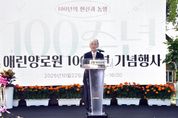 내고향뉴스 김익성 기자 | 김제시는 용지면 소재 애린양로원(원장 한종욱)이 개원 100주년을 맞아 ‘100년의 헌신과 동행’이라는 주제로 22일 기념행사를 개최했다고 밝혔다. 이날 행사는 사회복지 관계자, 지역주민, 후원자 및 자원봉사자 등 약 300여 명이 참석한 가운데 애린양로원 야외공연장에서 진행됐다. 식전공연, 개회선언에 이어 사회복지법인 애린원 한규택 대표이사의 기념사를 시작으로 각계 인사의 축사가 이어졌다. 특히 애린양로원의 어르신 복지향상과 기관 발전에 기여한 단체 및 직원 등을 대상으로 전북특별자치도지사 표창, 김제시장 표창 등 총 8개의 수상이 이뤄져 기쁨의 영광을 누렸다. 한종욱 원장은 “오늘의 영광은 지난 100년간 함께해주신 모든분들의 헌신 덕분”이라며 “앞으로도 어르신들의 품격 있는 삶과 행복을 위해 한결같은 마음으로 노력하겠다”고 밝혔다. 정성주 김제시장은 “김제의 자랑스러운 애린양로원이 창립 100주년을 맞이하게 된 것을 진심으로 축하드린다.”며, “앞으로의 100년도 지역사회와 함께 숨 쉬며, 든든한 복지의 중심으로 우뚝 서기를 기대한다.”고 전했다.