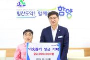 내고향뉴스 임정빈 기자 | 함양군은 13일 이병석 사무장(성창기 법무사사무소)이 함양군청을 방문해 취약계층에 전달해 달라며 성금 200만 원을 기탁했다고 밝혔다. 이날 기탁식에 참석한 이병석 사무장은 “이번 기탁이 소외된 이웃들에게 조금이나마 도움이 됐으면 한다”라고 전했다. 이에 진병영 군수는 “작년에 이어 올해도 어려운 이웃들을 위해 성금을 기탁해 주신 이병석 사무장님께 감사드린다.”라며 “소외되는 이웃이 없도록 세심하게 살피며, 필요한 분들에게 잘 전달될 수 있도록 최선을 다하겠다.”라고 밝혔다. 이날 기탁된 성금은 경남사회복지공동모금회를 통해 각 읍·면의 어려운 세대에 전달될 예정이다.