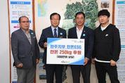 내고향뉴스 정미경 기자 | 어울림 봉사단과 소속 회원사인㈜호연테크(대표 최지원), 코치푸드(대표 배정은), 일이삼한방병원(대표 김일)이 완주군에 총 625만 원 상당의 물품과 성금을 전달했다. 최근 열린 전달식에는 유희태 완주군수를 비롯해 윤현철 어울림 봉사단 회장, 최지원 ㈜호연테크 대표(수석부회장), 배정은 코치푸드 대표(고문), 어울림 봉사단원 등 24명이 함께해 그 의미를 더했다. 후원 내역은 어울림 봉사단 프로폴리스 50개(225만 원 상당), ㈜호연테크 성금 100만 원, 코치푸드 고구마 및 가공품 50상자(150만 원 상당), 일이삼한방병원 건강보조제 50상자(150만 원 상당)다. 기탁된 물품과 성금은 사회복지시설 및 관내 취약계층 가정에 전달됐다. 윤현철 어울림 봉사단 회장은 “회원사 대표들이 함께 뜻을 모아 나눔에 동참해 주셔서 더욱 뜻깊다”며 “앞으로도 지역사회와 함께하는 다양한 활동을 이어가겠다”고 말했다. 유희태 완주군수는 “어울림 봉사단과 회원사 대표님들의 따뜻한 나눔이 지역사회에 큰 울림을 주고 있다”며 “소중한 정성이 어려운 이웃들에게 잘 전달될 수 있도록