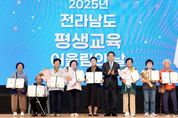 내고향뉴스 박성환 기자 | 전라남도는 17일 화순 하니움문화스포츠센터에서 ‘2025 전라남도 평생교육 어울림의 날’ 행사를 열고, 평생교육에 참여한 학습자들의 성취를 격려하며 평생학습 문화를 확산하는 뜻깊은 자리를 가졌다고 밝혔다. 이날 행사에는 김영록 전남도지사, 황성환 전남도교육청 부교육감, 구복규 화순군수, 류기준·임지락·오미화 전남도의원 등 주요 내빈을 비롯해 평생교육 학습자, 문해교육 시화전 수상자, 도민 등 700여 명이 참석했다. 행사는 ‘배움의 성취를 함께 나누는 평생학습의 장’으로 평생교육 학습자 간 교류와 화합을 통해 평생학습의 가치를 공유하기 위해 마련됐다. 개회식에서는 ‘평생학습으로 열어가는 전남 인재육성의 길’이라는 영상을 통해 전남인재육성 정책을 소개하고, 도지사상·도의장상·교육감상 등 평생교육과 문해교육 분야에서 우수한 성과를 거둔 총 30명에 대한 시상식이 진행됐다. 이어 평생학습자들은 ‘평생학습으로 밝히는 전남의 미래’를 주제로 희망의 불빛을 함께 밝히는 퍼포먼스를 펼치며, 평생교육을 통해 도민 모두가 함께 성장하는 전남을 만들어가겠다는 의지를 다졌다. 평