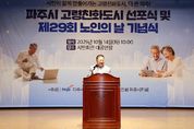 내고향뉴스 채필재 기자 | 파주시는 지난 14일 파주시민회관 대공연장에서 ‘제29회 노인의 날 기념행사 및 세계보건기구(WHO) 인증 고령친화도시 선포식’을 성황리에 개최하고, 고령사회에 대응하는 파주시 복지정책 방향과 세대 간 공감의 문화를 확산하기 위한 뜻깊은 자리를 마련했다. 이번 행사는 김경일 파주시장을 비롯해 박대성 파주시의회 의장, 경기도 및 파주시의원, 노인 관련 유관기관장 등 400여 명이 참석해 시민 모두가 행복한 고령친화도시를 만들어가겠다는 의지를 다졌다. 이날 행사에서는 노인복지 유공자 54명에 대한 표창 수여와 함께 고령친화도시 선포, 축하공연 등이 이어져 풍성한 볼거리를 선사했다. 김경일 파주시장은 “파주시는 세계보건기구(WHO)로부터 고령친화도시로 공식 인증받은 것을 계기로, 어르신이 존중받고 시민 모두가 행복한 도시를 만들겠다”라며 “앞으로도 노인복지 증진과 세대 통합을 위한 다양한 정책 실현을 통해 파주시민 모두가 ‘파주에 살기를 참 잘했다’라고 말할 수 있도록 최선을 다하겠다”라고 밝혔다. 향후 파주시는 관내 노인 관련 유관단체와 적극 협력하여 어르신의 목소리에 귀 기