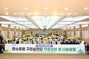 내고향뉴스 박성환 기자 | 울산 중구(구청장 김영길)가 10월 23일 오후 2시 30분 중구청 대회의실에서 ‘2050 탄소중립 구민실천단 역량 강화 및 나눔 활동’을 개최했다. 이번 행사는 탄소중립에 대한 공감대를 형성하고 주민 주도형 탄소중립 실천 문화를 확산하기 위해 마련됐다. 이날 행사에는 김영길 중구청장과 박경흠 중구의회 의장, 2050 탄소중립 구민실천단 단원 등 140여 명이 함께했다. 이번 행사는 △탄소중립포인트제 안내 및 홍보 △축하 공연 △탄소중립 실천 다짐 발표 △전문가 특강 △플라스틱 용기 없는 친환경 샴푸(샴푸바) 만들기 체험 순으로 진행됐다. 이날 신규 단원인 성신고 학생 및 교사 40명은 일상에서 다양한 탄소중립 활동에 앞장서겠다는 다짐을 밝혔다. 이어서 전문가 특강 순서에는 최승룡 에넬엑스코리아 신사업본부장이 ‘탄소중립과 세계적 추세(글로벌 트렌드)’라는 주제로 전 세계의 기후 위기 대응 흐름과 탄소중립 실천의 중요성 등을 설명했다. 이와 함께 참석자들은 플라스틱 용기 없는 친환경 샴푸(샴푸바)를 만들며 환경보호 의지를 다지고, 직접 만든 친환경