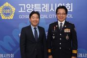 내고향뉴스 김익성 기자 | 고양특례시의회 김운남 의장은 9일, 강기택 일산서부경찰서장과 면담을 갖고 대화동 킨텍스 지원부지 인근 원형육교 주변 보행환경 개선 방안에 대해 의견을 나눴다. 이날 면담에서는 원형육교 인근 보행 동선과 관련해 주민 불편이 제기되고 있는 상황을 공유하고, 교통 안전과 보행 편의성을 함께 고려한 개선 방안에 대해 논의가 이뤄졌다. 특히 킨텍스 일대 주거 인구 증가와 GTX 킨텍스역 개통 이후 증가한 보행 수요를 반영해, 시민 보행 안전을 높일 수 있는 현실적인 개선 방안을 중심으로 논의가 이어졌다. 원형육교는 지난 2005년 녹지축 연결을 목적으로 설치돼 공원 간 보행 기능을 수행해 왔으나, 최근 킨텍스 지구 개발과 대규모 공동주택 단지 조성 등으로 주변 환경이 변화하면서 보행 동선과의 적합성에 대한 다양한 의견이 제기되고 있다. 김운남 의장은 “도시 환경과 교통 여건이 변화하는 만큼, 시민의 보행 안전과 이동 편의성을 종합적으로 고려한 검토가 필요하다”며 “관계기관과의 지속적인 소통을 통해 주민 불편을 최소화할 수 있는 방안을 함께 모색해 나가겠다”고 말했다. 강기택 일산서