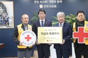 내고향뉴스 김익성 기자 | 전주시의회가 기부문화 확산을 위해 적십자 특별회비 전달에 동참했다. 전주시의회는 8일 의장실에서 남관우 의장과 대한적십자사 전북특별자치도지사 김홍식 회장, 대한적십자사봉사회 최봉만 완산지구 협의회장, 라태원 덕진지구 협의회장 등이 참석한 가운데 2026년도 적십자 특별회비 전달식을 가졌다. 이날 전달된 특별회비(100만원)는 긴급재난구호와 지역사회 봉사, 취약계층 지원 등에 사용된다. 남관우 의장은 “인도주의를 바탕으로 헌신적 봉사활동에 앞장서고 있는 적십자사의 활동에 깊이 감사를 드린다”며 “전주시에 나눔과 봉사의 아름다운 꽃이 활짝 피어날 수 있도록 전주시의회도 최선을 다하겠다”고 말했다. 이에 김 회장은 “적십자 특별회비로 나눔문화 확산에 앞장선 전주시의회에 감사드리며, 앞으로도 적십자는 도움의 손길이 필요한 곳에 늘 함께하겠다”고 화답했다.
