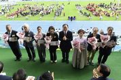 내고향뉴스 라정운 기자 | 문경시는 10월 16일, 문경시민운동장에서 시민들의 화합 한마당 행사인 ‘제74회 문경시민체육대회 및 문화제’를 성황리에 개최했다. 개회식에는 신현국 시장을 비롯해 이정걸 시의회 의장, 노순하 체육회장, 권용문 문화원장 직무대행, 유진선 교육지원청 교육장, 지역 출향인사 등 많은 내빈이 참석해 자리를 빛냈다. ‘화합의 시민체전, Again 2031 세계군인체육대회!’라는 주제로 열린 이번 대회는 취타대와 14개 읍면동 선수단 입장을 시작으로 시민헌장낭독, 개회선언, 성화점화, 문경대상 시상식, 감사패 수여, 홍보대사 위촉식, 대회사 및 축사, 우승기 반환, 선수 및 심판대표 선서, 축하공연 순으로 다채롭게 진행됐다. 특히 대회의 하이라이트인 성화 봉송 최종 주자는 대한민국 소프트테니스 역사상 최초로 전국 남중부 단체전 6개 대회 전관왕을 달성한 문경중 소프트테니스부 선수들과 올해 문경단오씨름대회에서 소백장사에 오른 문경시청 실업팀 박대한 선수로 문경의 위상을 높인 인물들이 맡았다. 이날 축하공연에는 ‘제3회 문경트롯가요제’의 수상자이자 이번에 문경시 홍보대사로 위촉된 장현