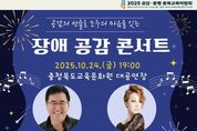 내고향뉴스 채필재 기자 | 충청북도교육청 직속기관 특수교육원은 24일 저녁, 장애와 비장애의 경계를 넘어 서로의 마음을 잇는 특별한 무대인 '모두의 마음을 잇는 장애 공감 콘서트'를 교육문화원에서 가졌다. 공연에는 학생, 학부모, 교직원, 도민 950여 명이 함께하며 장애인과 비장애인이 음악으로 소통하는 뜻깊은 시간을 나눴다. 이번 콘서트는 장애 인식 개선과 문화예술을 통한 사회적 공감 확산을 위해 마련된 무료 기획 공연이다. 우리나라 최초의 청각장애인 아이돌 그룹인 빅오션, 폭발적인 고음과 감성 보컬로 섬세한 표현력까지 겸비한 HYNN(박혜원), 소찬휘, 권인하 등의 가수가 출연해 다채로운 무대를 선보였다. 최명옥 특수교육원장은 “장애에 대한 사회적 인식 개선을 위해 앞으로도 특수교육원이 다양한 공연 및 행사로 장애 공감 문화 확산을 위한 중추적인 역할을 담당하겠다.”라고 밝혔다. 윤건영 교육감은 “이번 콘서트는 단순한 공연이 아니라, 서로의 다름을 이해하고 함께 어우러질 수 있는 사회를 만들어가는 작은 발걸음이다.”라며, “앞으로도 모두의 마음을 잇는 문화예술 프로그램을 지속적으로