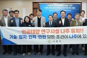내고향뉴스 박성환 기자 | 전라남도 나주시가 정부의 차세대 전력망(K-그리드) 구축 정책에 발맞춰 차세대 전력산업 중심도시로 도약하기 위한 지역 전략 마련에 나섰다. 나주시는 22일 시청 이화실에서 ‘이재명 정부의 에너지 정책과 나주의 역할’을 주제로 정책 간담회를 열고 정부의 전력망 혁신 정책 대응 방향과 기관 간 협력 방안을 논의했다고 밝혔다. 이날 간담회에는 윤병태 시장을 비롯해 전남테크노파크, 녹색에너지연구원, 에너지밸리기업개발원, 한국기계전기전자시험연구원, 한국전자기술연구원, 한국에너지공과대학교, 동신대학교 등 지역 에너지 유관기관과 대학 관계자들이 참석했다. 참석자들은 인공태양(핵융합) 연구시설 유치, 직류(DC) 기반 전력산업 육성, K-그리드 인재 및 창업 밸리 조성 등 주요 과제를 공유하고 R&D, 인프라, 기업 지원, 인재 양성 등 4대 분야별 협력 방안을 집중적으로 논의했다. 또한 간담회 참석자들은 ‘인공태양 연구시설 나주 유치’를 염원하는 퍼포먼스를 진행하며 정부 공모사업 대응 의지를 함께 다졌다. 참석자들은 “나주는 에너지밸리 혁신도시를 중심으로 연구와 산업 생태