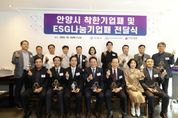 내고향뉴스 박성환 기자 | 안양시는 16일 오전 11시 30분 관내 음식점에서 지역사회와 이웃을 위해 나눔을 실천한 14개 기업을 대상으로 간담회와 함께 ‘착한기업’ 및 ‘이에스지(ESG)나눔기업’ 감사패 전달식을 가졌다. 나눔 실천에 감사의 마음을 전하고 나눔문화를 활성화하기 위한 이번 행사에는 최대호 안양시장과 14개 기업 대표 및 임원진, 구재관 지역사회보장협의체 민간위원장, 김효진 경기사회복지공동모금회 사무처장 등 20여명이 참석했다. 안양시 착한기업은 2년 이상 지속적으로 연평균 1천만원 이상을 기부한 기업으로, 이날 ▲(주)텔레트론 ▲이알케이솔루션(주) 등 2곳이 착한기업 감사패를 받았다. 이에스지(ESG)나눔기업은 지난해 1천만원 이상을 안양시에 기부한 기업으로, 착한기업으로 선정된 2개 기업과 ▲사회복지법인 백우현진복지재단 ▲(주)코스콤 ▲HL홀딩스 주식회사 ▲㈜쿠스코 ▲㈜대현환경 ▲㈜스크린에이치디코리아 ▲㈜벨루션네트웍스 ▲지에스파워(주) ▲디엔에프솔류션 ▲라온디앤씨(주) ▲평촌교통 ▲인창전자(주) 등 14개 기업이 이에스지(ESG)나눔기업 감사패를 받았다. 최대호 안양시장은 “기부는