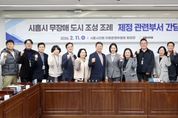 내고향뉴스 김익성 기자 | 경기 시흥시의회는 지난 11일 의회운영위원회 회의장에서 '시흥시 무장애 도시 조성 조례' (대표발의: 김수연 의원) 제정을 위한 간담회를 개최했다. 이번 간담회는 장애인, 고령자, 임산부 등 모든 시민이 물리적·심리적 장벽 없이 안전하고 편리하게 생활할 수 있는 도시 환경을 구축하기 위해 마련됐다. 이번 간담회에는 조례안을 발의한 의원들과 관계 공무원 등 총 20명이 참여하여, 무장애 도시 조성을 위한 제도적 방향과 실질적인 이행 방안을 집중적으로 논의했다. 조례안의 주요 내용은 ▲무장애 도시 조성의 법적 기반 마련 및 추진위원회 구성 ▲무장애 시설 점검 및 평가를 위한 모니터링 체계 구축 ▲ 참여 기관 등에 대한 재정지원 및 인센티브 부여 등이 있다. 참석자들은 국내·외 우수 사례와 시흥시의 현장 실태를 공유하며, 무장애 도시 조성에 대한 근거와 실효성을 확보하는 데 깊은 공감대를 형성했다. 특히 시흥시의회는 정책의 실효성을 높이기 위해 복지·도시정책·교통 등 관계 부서 간의 유기적인 협력을 주문했다. 현장의 애로사항과 민원을 적극 반영한 시범사업을 추진하여 시행착오를