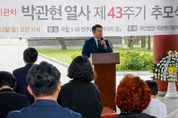 내고향뉴스 김형구 기자 | 이정선 광주시교육감이 12일 국립5·18민주묘지 ‘역사의 문’ 앞에서 열린 ‘민주화의 새벽기관차 박관현 열사 제43주기 추모식’에 참석했다. 이날 추모식에는 이정선 교육감을 비롯해, 강기정 광주광역시장, 윤목현 5·18기념재단 이사장, 이개호 영광군 국회의원, 유족 및 시민사회단체 관계자 등이 참여해 열사의 숭고한 뜻을 기렸다. 이정선 교육감은 “박관현 열사의 숭고한 정신을 잊지 않고 기억하는 길은 5·18 정신을 미래 세대에 계승하고 발전시키는 교육이다”며, “오월 정신을 전국으로, 세계로 알리고 확산하여 민주주의와 인권, 평화의 가치를 교육 현장에서 실천해 나가겠다”고 밝혔다.