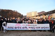 내고향뉴스 김익성 기자 | 의정부시의회는 지난 1일 병오년 새해를 맞아 지역 주민들과 함께 걸으며 희망찬 2026년을 시작할 수 있도록 ‘해맞이 산책, 하천길 따라 새빛정원까지’ 신년 해맞이 행사에 참석했다. 이번 행사는 ▲호원 생활체조광장에서 출발해 ▲신의교~신곡교 중간지점 벽천분수 ▲동오역 생활체조광장 ▲경기도청 북부청사역 인근 벽천분수를 거쳐 ▲신곡새빛정원까지 이어지는 릴레이 산책 코스로 진행됐다. 해맞이 행사에는 시민들과 함께했으며, 15개 동 통장협의회가 행사 준비와 운영에 참여해 중랑천, 부용천 산책로를 걸으며 새해에도 시민들과의 공동체 의식을 함양하고자 마련됐다. 김연균 의장을 비롯한 권안나 부의장과 의정부시장, 의정부시통장협의회 등이 참석했다. 행사에 참석한 의원들은 “희망과 도약을 상징하는 붉은 말의 해를 맞아 시민들과 첫 해맞이를 함께하게 되어 더없이 기쁘다며” “올 한 해 더욱 시민들의 목소리에 귀 기울이고 함께 공감·소통하며, 의정부시의 발전을 이끄는 의정부시의회가 되도록 노력하겠다”고 전했다.