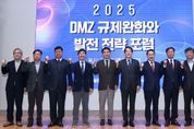 내고향뉴스 박성환 기자 | 강원특별자치도는 11월 27일 오후 2시 강원연구원 리버티홀에서 「2025 DMZ 규제완화와 발전전략 포럼」을 개최했다고 밝혔다. 이번 포럼은 강원특별자치도가 주최하고 강원일보사가 주관하며, 강원특별법 시행을 계기로 본격화된 규제완화와 함께 접경지역을 제약의 공간에서 기회의 중심지로 재정의하고 새로운 발전 전략을 모색하기 위해 마련됐다. 포럼에는 김진태 도지사를 비롯해 지역주민, 전문가, 접경지역 시군 관계자 등 100여 명이 참석해 접경지역 발전 방안에 대한 다양한 의견을 나눴다. 포럼은 김열수 안보전략실장(한국군사문제연구원)의 기조강연 ‘이재명 정부 출범 이후 남북관계 전망’을 시작으로, 김창환 교수(강원대학교)의 ‘접경지역 규제완화에 따른 지역발전의 실천적 전략’ 주제발표가 이어졌다. 종합토론에는 ▲양철 연구위원(강원연구원) ▲김진무 전(前) 북한센터장(국방연구원) ▲김덕용 속초시 번영회장 ▲류종현 교수(강원대학교)가 참여하여, 규제완화 이후 접경지역의 변화와 전략, DMZ 생태·기술 융합 자산화 방안, 주민 삶의 질 향상과 거버넌스 혁신, 軍·지자체 협력 및 안보