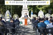 내고향뉴스 박성환 기자 | 자유민주주의를 수호하다 희생된 영령들의 넋을 기리는 제45회 합동위령제가 24일 정읍 내장산 향토자유수호기념비 앞에서 엄수됐다. 한국자유총연맹 정읍시지회 주관으로 열린 이날 위령제에는 유가족과 각계 인사 70여 명이 참석해 호국영령의 숭고한 헌신을 추모하고 안보 의식을 다졌다. 이날 위령제에는 이학수 시장·박일 시의회 의장·최용훈 정읍교육지원청 교육장·박상훈 정읍경찰서장을 비롯한 기관단체장과 자유수호 희생자 유가족, 연맹 회원 등 70여 명이 참석해 희생자들의 넋을 기렸다. 행사는 엄숙한 분위기 속에서 경과보고·종교의식·조시낭독·추념사·추도사 등의 순서로 진행됐다. 심정술 회장은 추념사에서 “자유수호를 위해 희생하신 호국영령의 뜻을 가슴 깊이 되새기며 자유 민주주의를 지켜 나가겠다”고 말했다. 이학수 시장은 추도사를 통해 “우리가 누리는 자유와 번영은 호국영령들의 희생과 헌신 위에 세워진 결실”이라며 “위령제가 호국영령의 숭고한 정신을 되새기고 안보의식을 다지는 뜻깊은 시간이 되기를 바란다”고 전했다. 한편, 한국자유총연맹 정읍시지회는 매년 10월