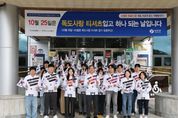 내고향뉴스 박성환 기자 | 영양군은 10월 24일 오전 독도의 날을 기념해 군청사 입구에서 오도창 영양군수를 포함한 공직자 60여 명이 참석한 가운데 ‘독도 사랑 티셔츠 입기 운동’행사를 진행했다. 영양군의 공직자들부터 앞장서서 독도 사랑 티셔츠를 입고 근무하면서 독도의 날 의미를 되새기고, 온 국민 하나 되기 운동에 동참하는 모습을 보였다. 이날 행사는 지난 1900년 10월 25일 대한제국의 고종황제가 독도를 울릉도에 편입시키는 칙령 제41호를 반포한 역사적으로 뜻깊은 날을 기념하기 위해 직원들 모두 독도 사랑 티셔츠를 입고 태극기를 손에 들고 우리 땅 독도 지키기 운동에 앞장설 것을 다짐하는 계기가 됐다. 오도창 영양군수는 “독도의 날 행사를 통해 영양군민 모두가 독도에 대한 더 많은 관심과 애정을 가졌으면 한다.”라며 “‘독도 사랑 티셔츠 입기 운동’은 알고는 있지만 행동으로 실천하기 힘든 독도 사랑을 이번 기회를 통해 나타내며, 공직자부터 먼저 독도사랑에 앞장서는 모습을 보여줌으로써 우리 고유 영토의 소중함을 다시금 되새기는 순간이 됐길 바란다.”라고 말했다.