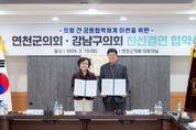내고향뉴스 김익성 기자 | 강남구의회는 10일 연천군의회를 방문해 지방의회간 우호 증진 및 공동발전을 위한 친선교류 강화를 논의했다. 친선결연 협약식은 연천군 임시회 본회의가 종료한 후 진행했으며 이호귀 의장·복진경 부의장·이동호 운영위원장·손민기 의원이 참석해 친선결연 논의 및 상호 협력 추진을 위한 차담회를 진행하며 문화시설 등을 시찰했다. 주요 협약 내용으로 지역경제 활성화를 위한 교류 추진, 기관 간 협력 활동을 통한 정보교환 및 상호발전 방안 협의, 기관 간 공동이익을 위한 분야별 협력 추구, 그 밖에 상호 발전을 위해 필요한 사항이 논의됐다. 이호귀 의장은 답사를 통해“연천군이 지역 발전과 생태 보호에 힘써온 노력에 진심 어린 존경을 표한다”라며, “지방자치 발전과 지역 간 상생의 모범을 만들기 위해 연천군의회와 더욱 긴밀히 협력하겠다”라고 말했다.