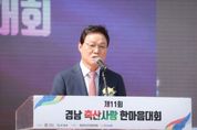 내고향뉴스 임정빈 기자 | 경상남도는 17일 고성군 스포츠타운에서 열린 ‘제11회 경남 축산사랑 한마음대회’에서 지속가능하고 스마트한 경남 축산 실현을 강조했다. 이번 행사는 경상남도와 고성군이 주최하고, 경남축산단체협의회와 경남농협이 주관했으며, 박완수 도지사, 이상근 고성군수, 최학범 경남도의회 의장, 류길년 농협경남지역본부장, 지역 농축협장, 축종별 단체 축산농가(한우·한돈·낙농·양봉·산란계·오리) 및 지역주민 등 1,000여 명이 참석해 성황을 이뤘다. 이번 대회는 ‘미래를 여는 힘! 건강한 축산, 행복한 경남!’을 주제로 열렸으며, 지난해 가축전염병 확산 방지를 위해 중단된 이후 2년 만에 재개된 것으로, 도내 축산인들이 한자리에 모여 소통과 화합을 다지고 경남 축산물의 우수성을 널리 알리며 소비 촉진 분위기를 확산하기 위해 마련됐다. 박완수 도지사는 이날 현장에서 축산 발전 유공자에게 도지사 표창을 수여하며 공로를 치하했고, 이어 축종별 단체 부스와 우수 축산물 시식회‧홍보관을 둘러보며 축산인들과 소통하고 현장의 의견을 청취했다. 또한 박 지사는 인사말을 통해 “올해 여러 재난과 어려움